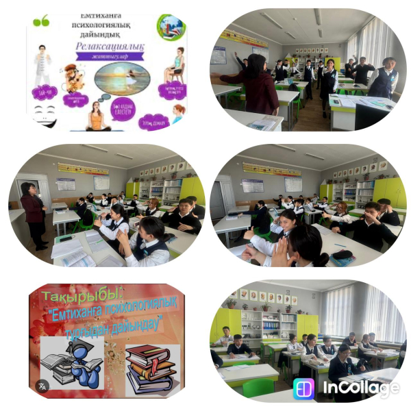Психологиялық білім тестке дайындау тиімділігін арттырып, тест кезінде тапсырушының өзін ойдағыдай ұстауға көмектесіп қана қоймай, ой жұмысы дағдыларын дамытуға, маңызды кездерде жұмысқа жұмылдыруға, эмоцияларын қолға алуға көмектеседі.  Оқушылармен«Дыбыстық гимнастика», «12 нүкте жаттығуы», «Айна» жаттығулары жүргізіліп, соңында тренинг жаттығуынан алған әсерлерімен бөлісті.