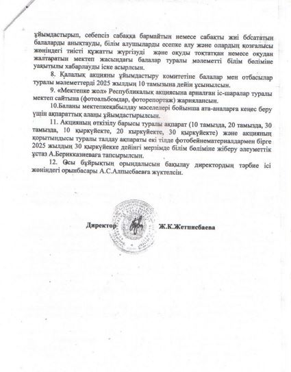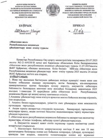 «Мектепке жол» Республикалық акциясын ұйымдастыру және өткізу туралы