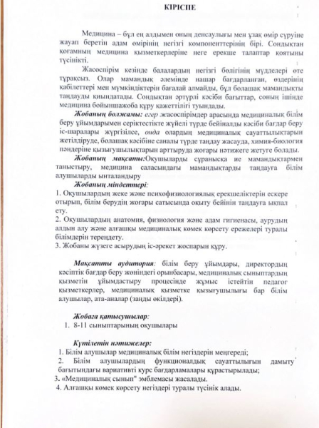 «МЕДИЦИНАҒА ҚАДАМ» МЕДИЦИНАЛЫҚ СЫНЫП