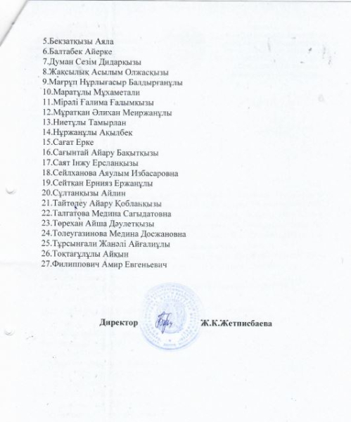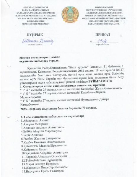 Мектеп оқушылары тізіміне оқушыны қабылдау туралы
