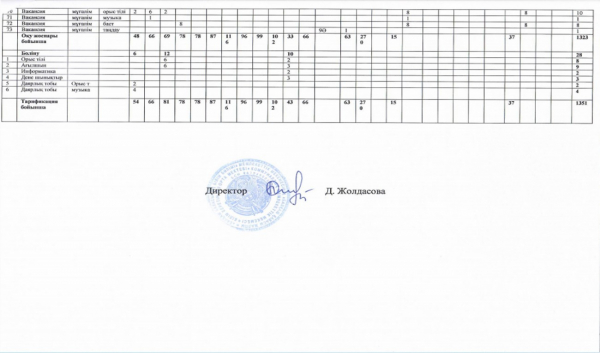 2020-2021оқу жылының қаңтар айына Тарификация тізім