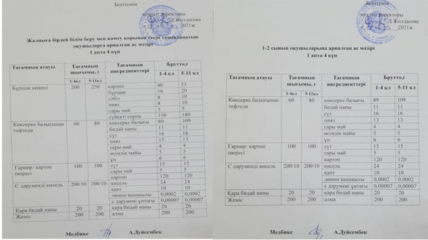 18.03.2021 жылғы ас мәзірі