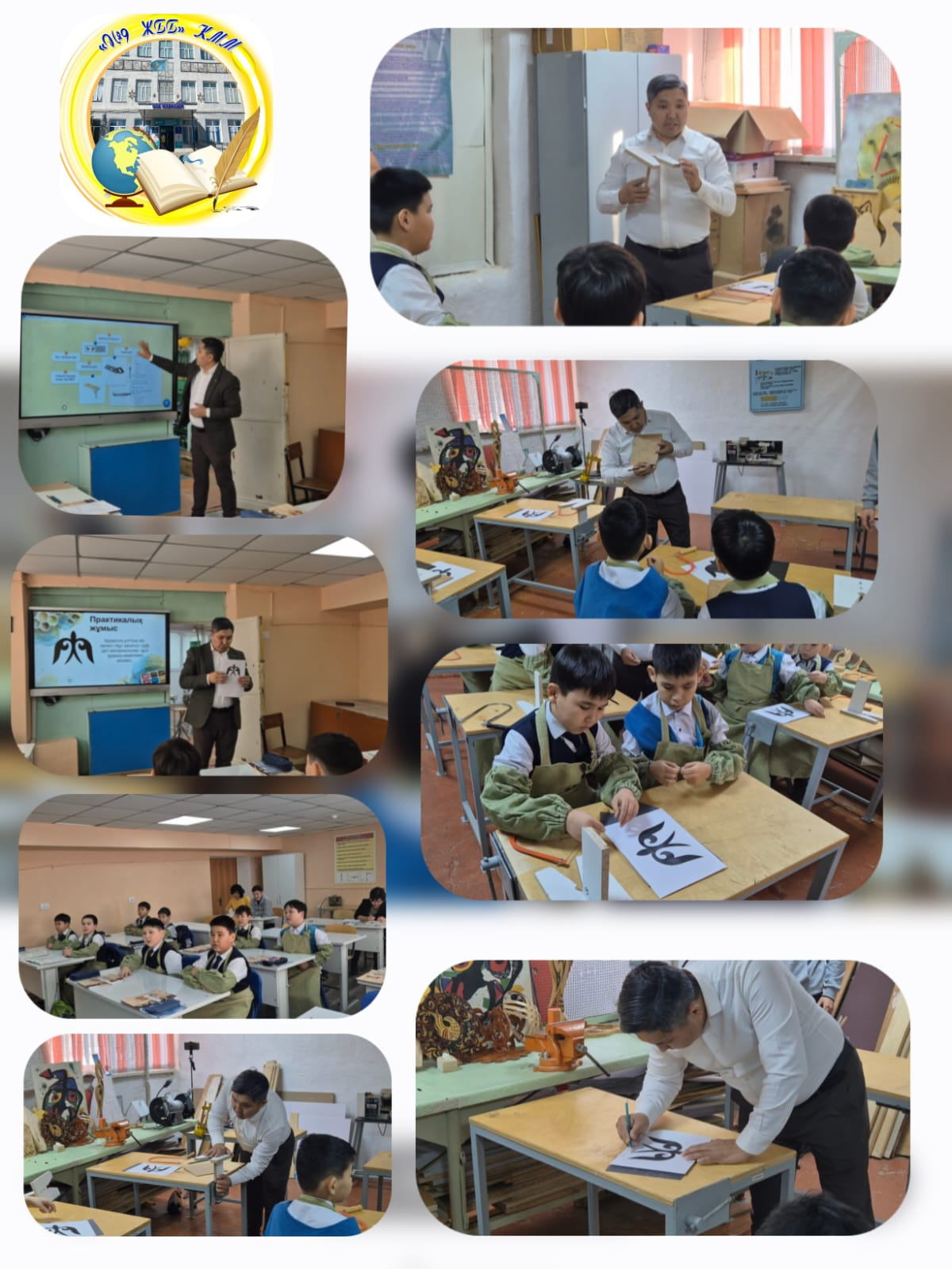 11 февраля 2026 года в общеобразовательной школе №9 нашего города в рамках серии открытых уроков городского «Методического марафона» учитель предмета «Художественный труд», педагог-модератор Мурат Хайратбек провёл открытый урок в 5 «Б» классе на тему «Декоративное выпиливание криволинейных изделий с использованием внешних и внутренних линий».