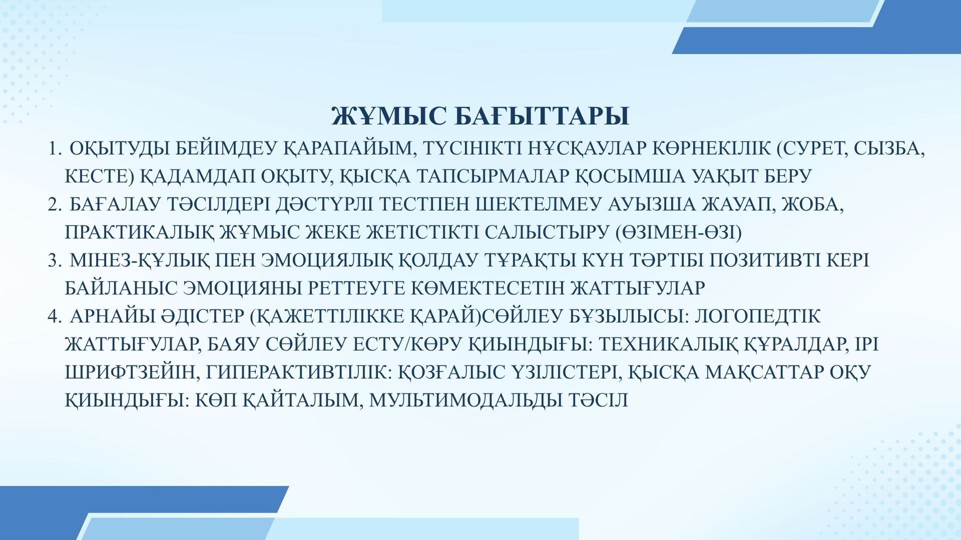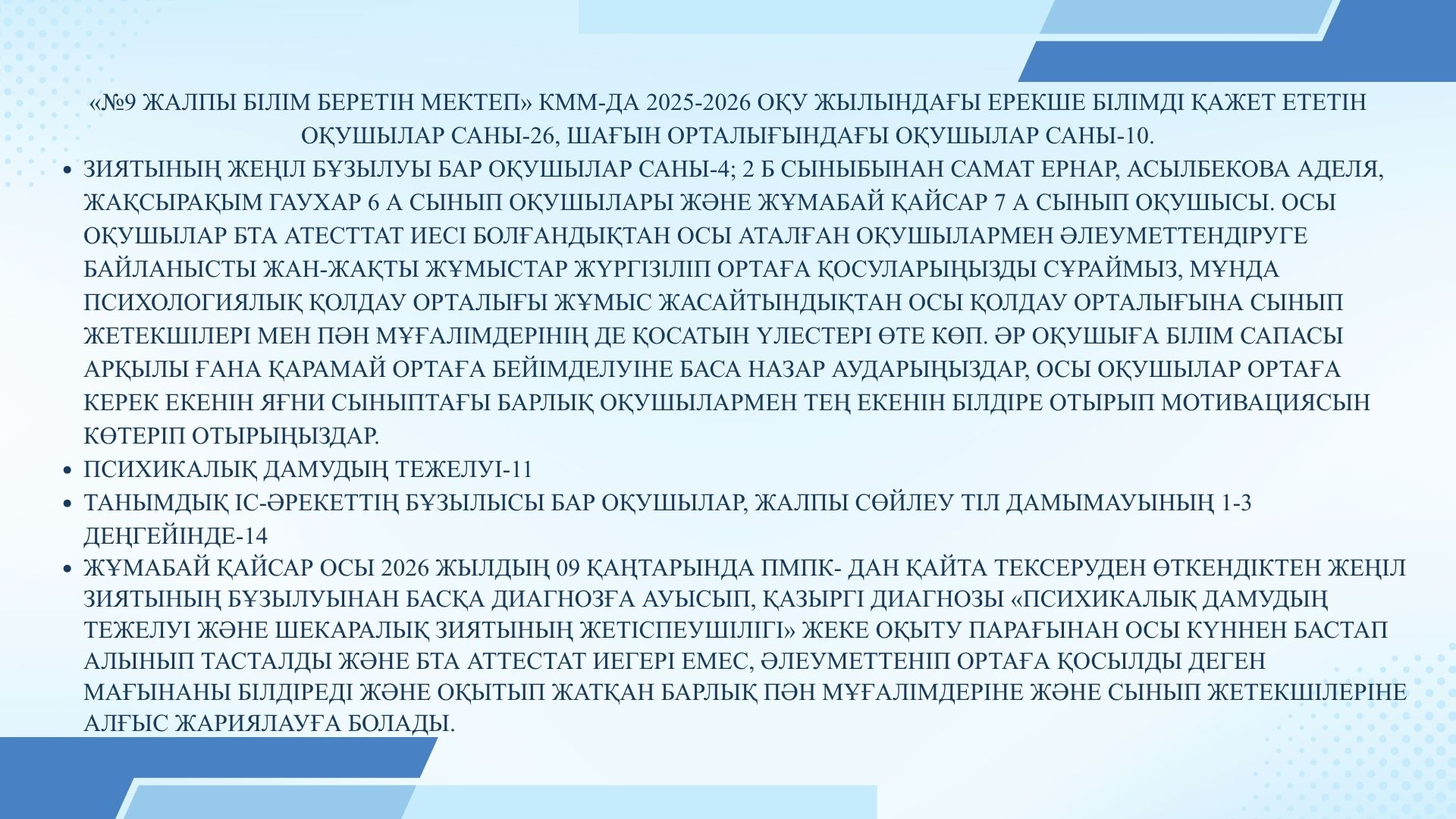 Ерекше білімді қажет ететін оқушылармен жүргізілген жұмыстарының жарты жылдық қорытындысы 2025-2026 оқу жылы