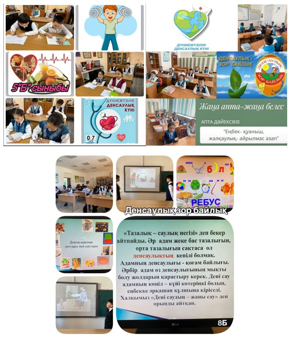 «Адал азамат» біртұтас тәрбие бағдарламасы аясында мектебімізде саптық жиын өтті. Жиында апта жаңалықтары айтылып, оқушылар жетістіктерімен марапатталды. 7 сәуір – Дүниежүзілік денсаулық күні орай , «Салауатты өмір – жарқын болашақ кепілі» тақырыбында сынып сағаты өткізілді.Сынып сағатының мақсаты – оқушыларға денсаулықтың адам өміріндегі маңызын түсіндіру, салауатты өмір салтын ұстануға тәрбиелеу, дұрыс тамақтану мен спорттың пайдасын насихаттау болды.
