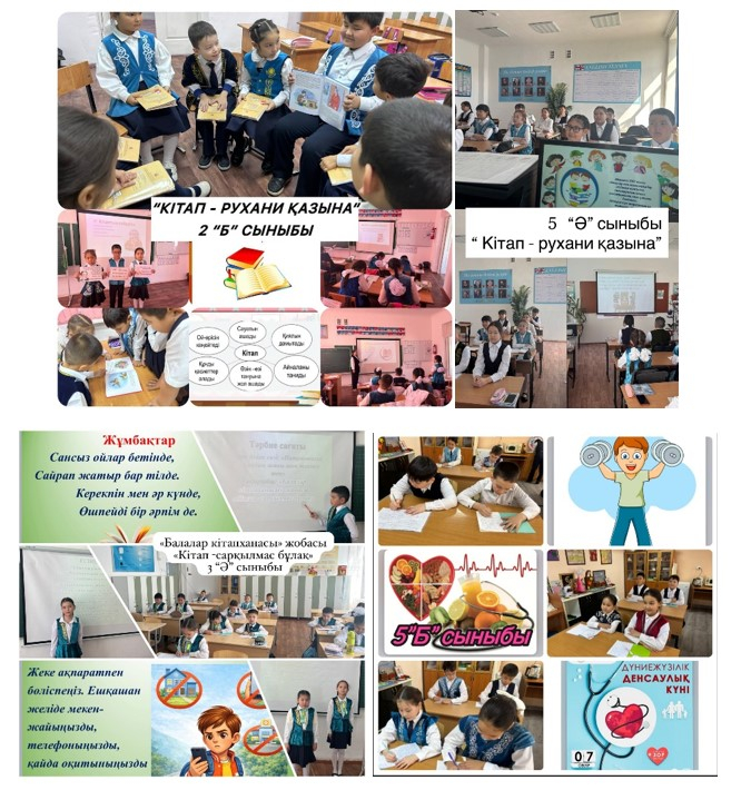 «Адал азамат» біртұтас тәрбие бағдарламасы аясында  мектебімізде 30.03.26 күні  «Кітап – рухани қазына» тақырыбында сынып сағаты өткізілді. Сынып сағатының мақсаты – оқушылардың кітапқа деген қызығушылығын арттыру, кітаптың адам өміріндегі маңызын түсіндіру, рухани байлықтың негізі білім мен кітап екенін ұғындыру болды. Шара барысында оқушылар кітаптың пайдасы туралы өз ойларымен бөлісіп, сүйікті кітаптары жайлы әңгімеледі. Сонымен қатар, қазақтың ұлы ақын-жазушыларының шығармалары туралы мәліметтер айтылып, олардың даналық сөздері оқылды. Оқушылар кітап туралы мақал-мәтелдер айтып, көркем әдебиеттің адам тәрбиесіндегі рөлі талқыланды.