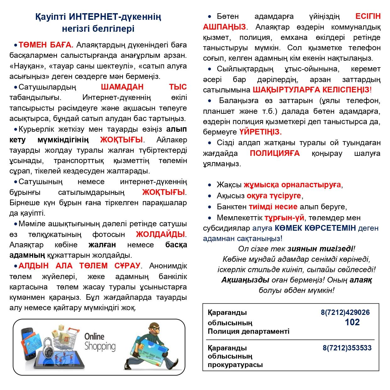 Алаяқтықтың құрбаны болмау туралы жаднама.