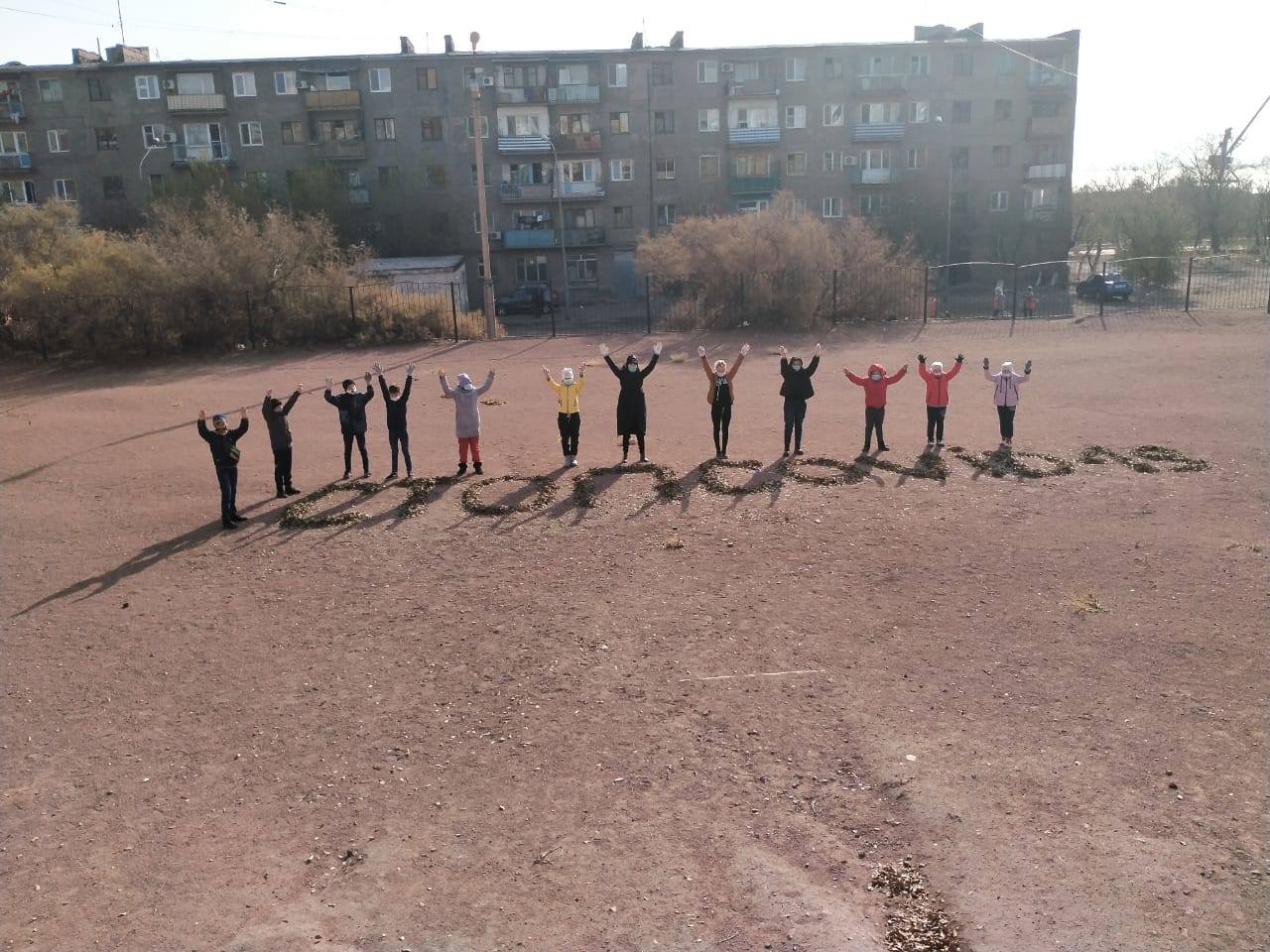Бүгін, 27.10.2020 жылы №10 ЖББОМ оқушылары мектеп ауласындағы күзгі жапырақтардан "Тоқта.Ковид-19!" жазуын жасау бойынша волонтерлік науқанына қатысты.