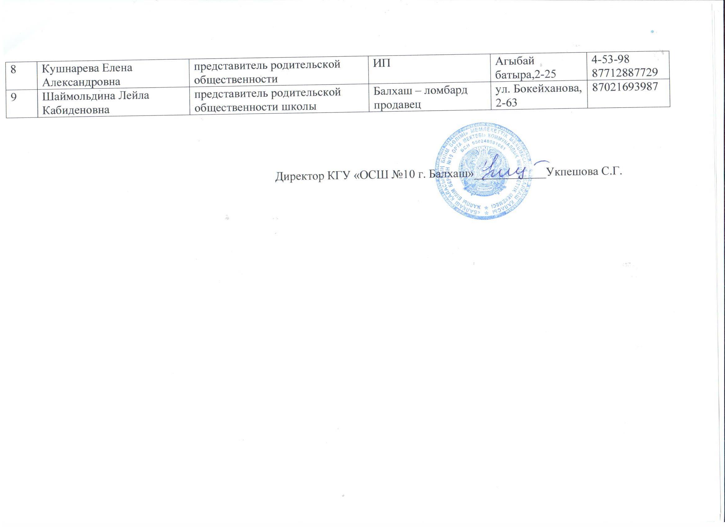 Список попечительского совета КГУ "Общеобразовательная средняя школа №10 г.Балхаш" города Балхаш" 2020-2021 учебный год