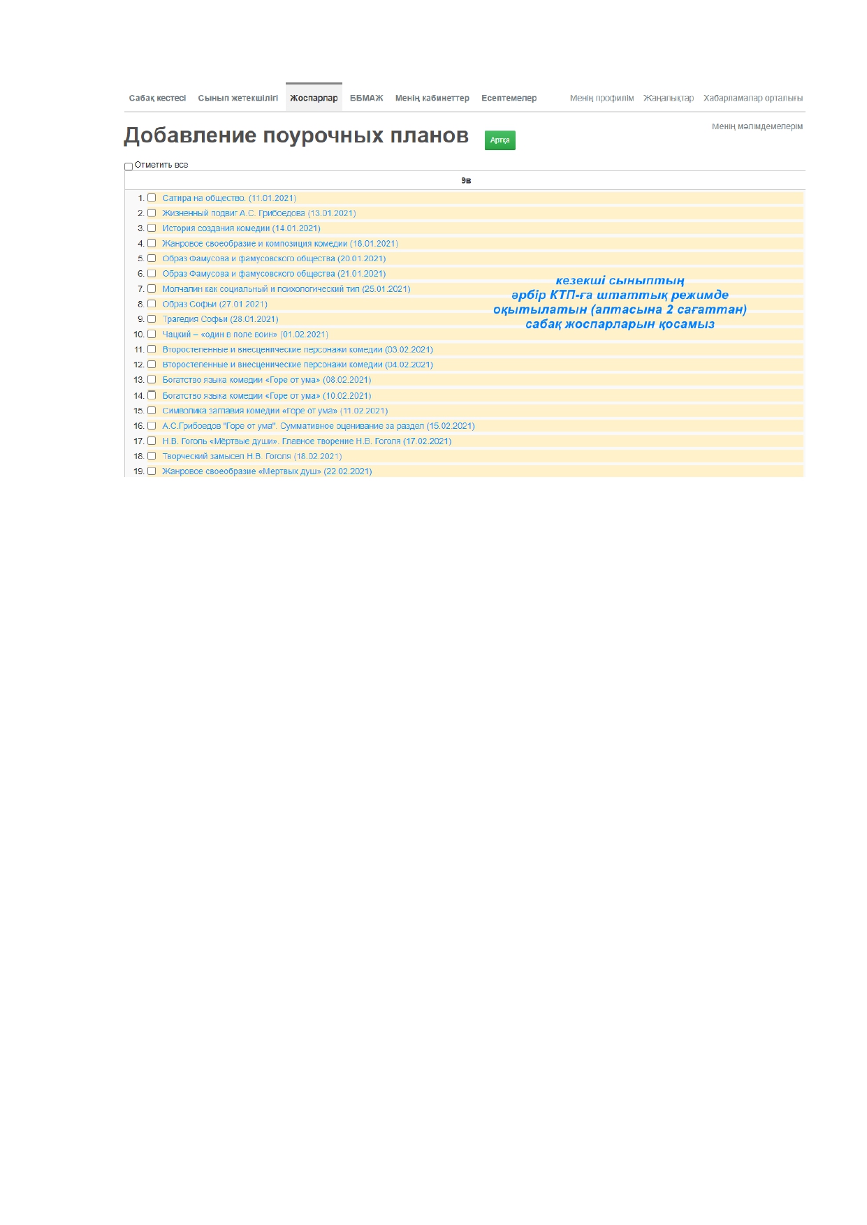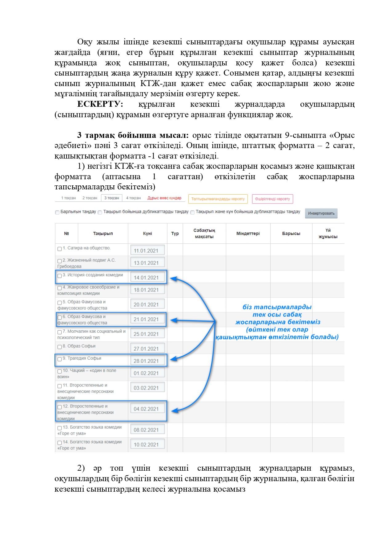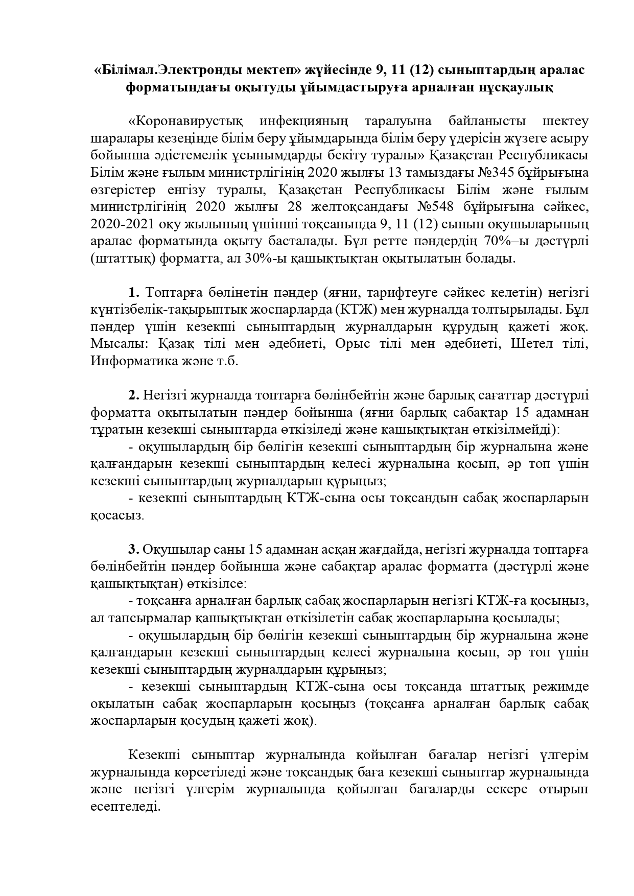 «Білімал.Электронды мектеп» жүйесінде 9, 11 (12) сыныптардың аралас форматындағы оқытуды ұйымдастыруға арналған нұсқаулық