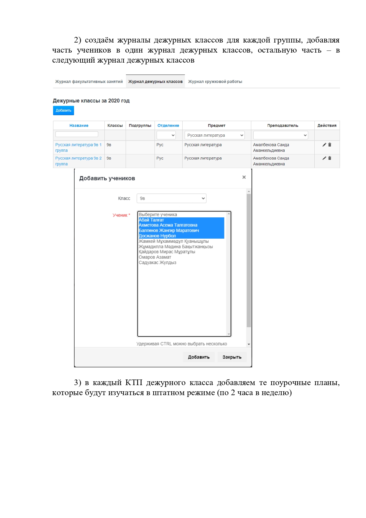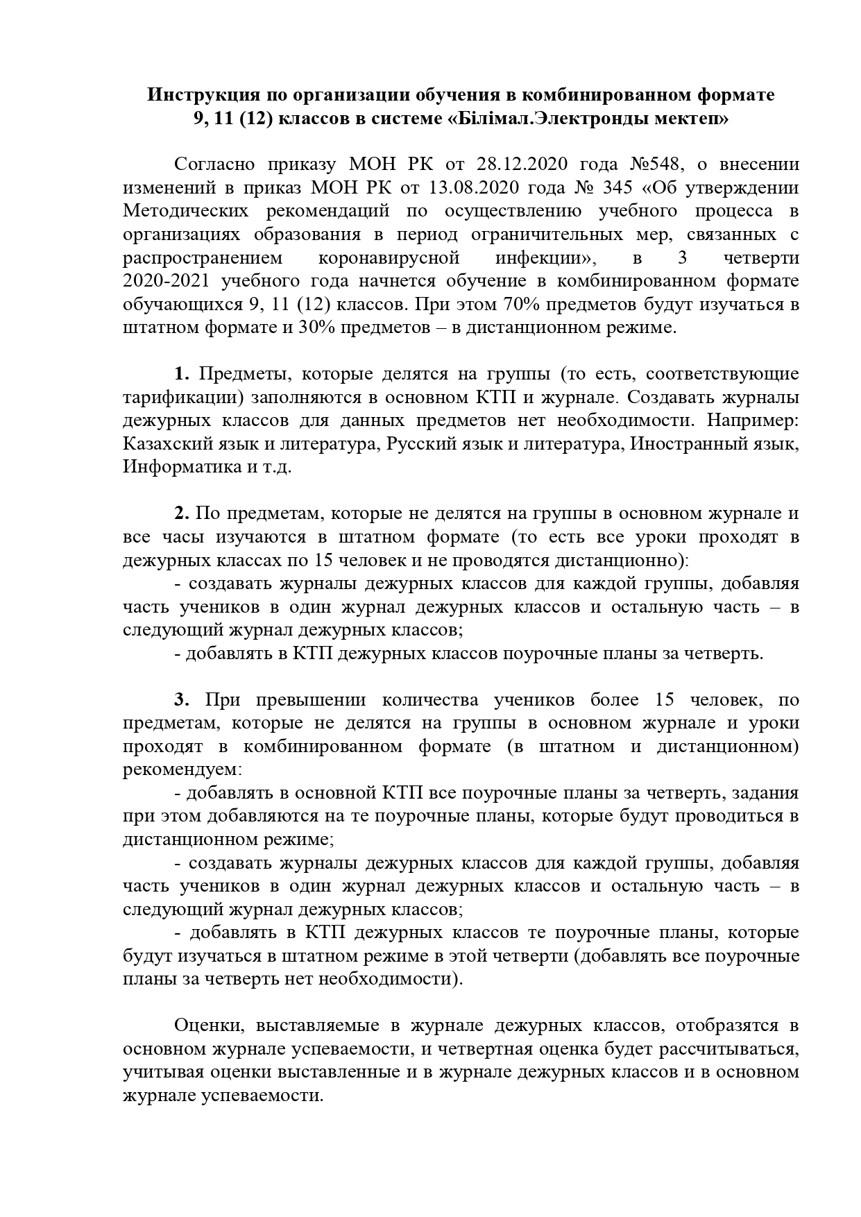 Инструкция по организации обучения в комбинированном формате 9,11 (12 классы) в системе "Билимал. Электронды мектеп"