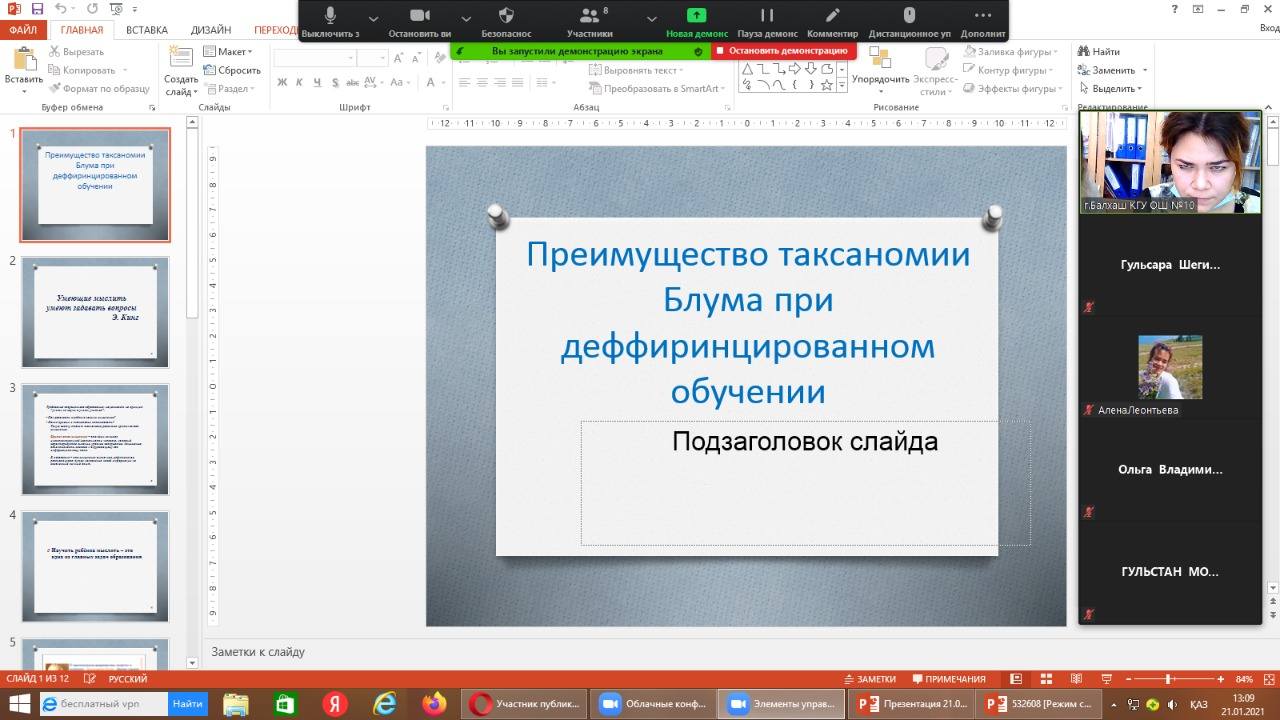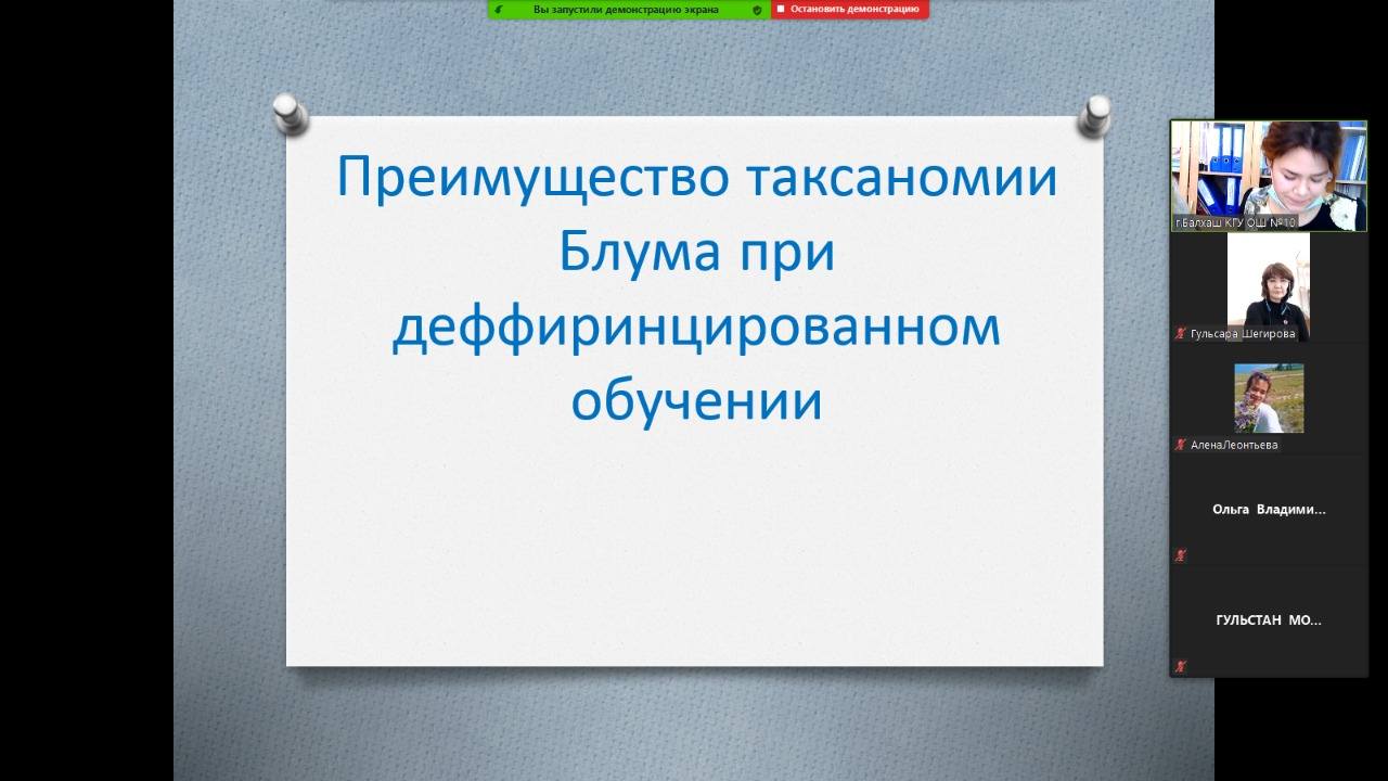 Учитель английского языка Леонтьева А. А. На мастер-классе для учителей «эффективность уровневого обучения по таксаномии Б. Блума " поэтапно, приводя примеры из практики.Учителя вспоминали то, что не знали, и поблагодарили ведущих.