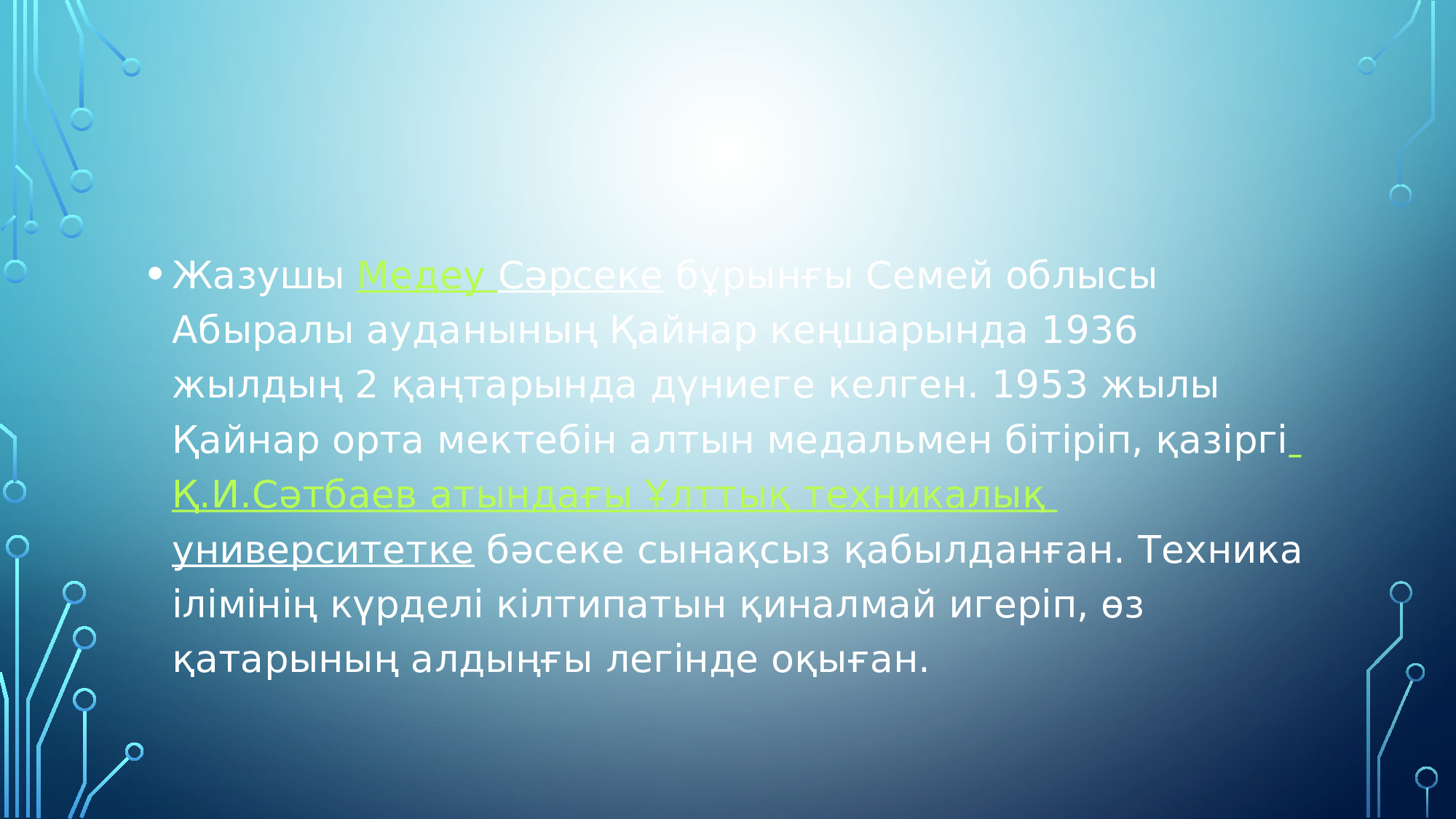Круглый стол для учащихся 9-10 классов прошел в онлайн форме. Название круглого стола было обозначено под заголовком "Қаңтарда туған қаламгер". Была проведена беседа о жизненном пути и творчестве великого Семипалатинского писателя Медеу Сапаулы Сарсеке, изучившего признанного во всем мире академика Каныша Сатпаева. Учитель казахского языка Шегирова Г. А., рассказавшая о том, как в произведениях писателя можно увидеть казахскую историю, исторические личности, которые привлекли к себе внимание читателя, посоветовала больше читать такие духовно ценные вещи. В свою очередь, обучающиеся убедились, что Медеу Сапаулы является «живой летописью». Конечно, у подрастающего поколения еще много вопросов к старшему поколению.