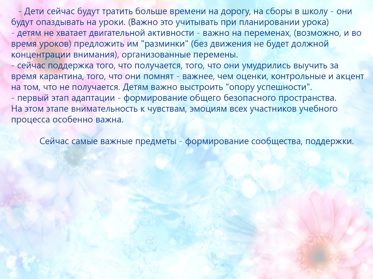 Адаптация к школе после карантина