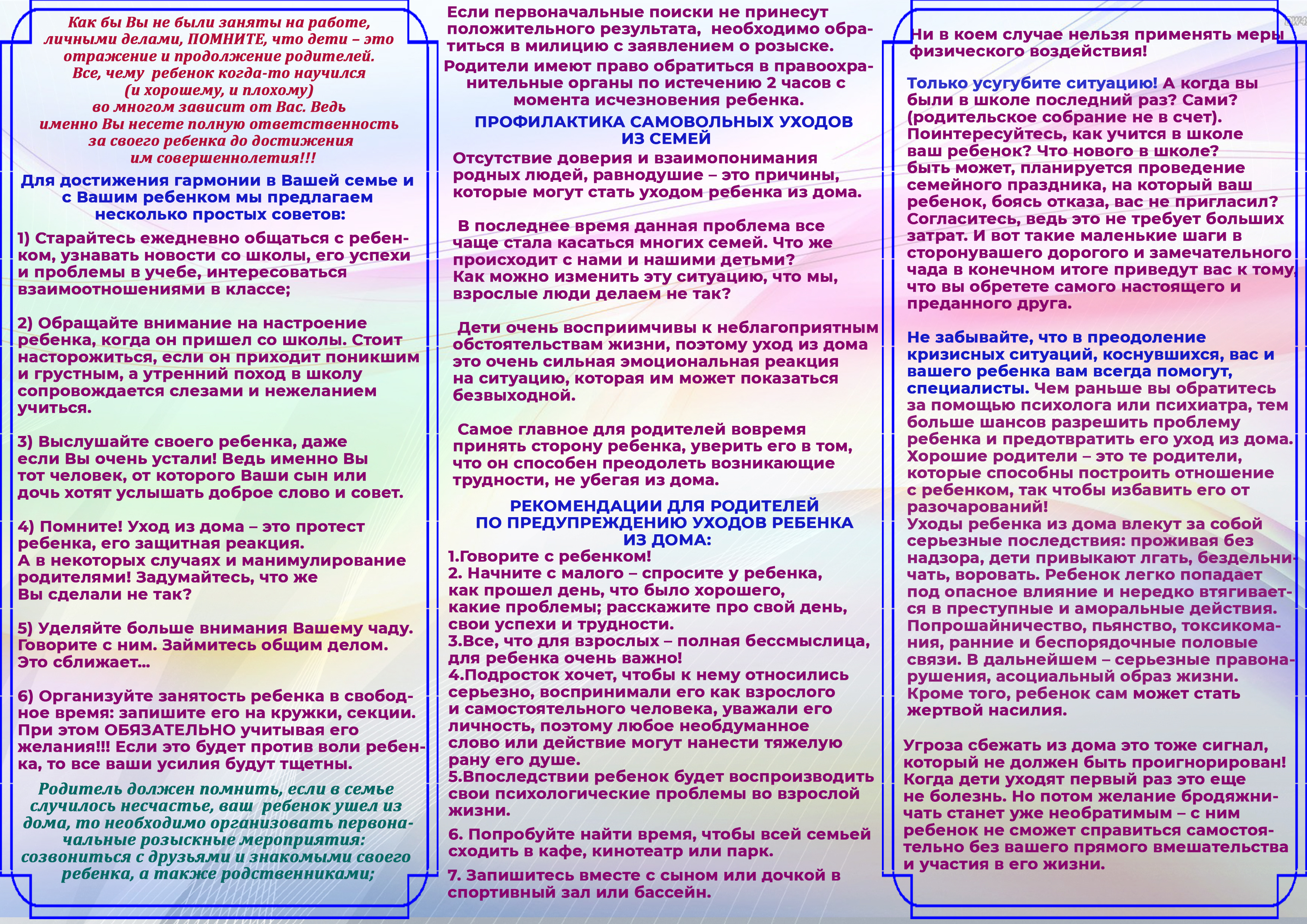Бұл ақпарат үйден жасөспірімдердің кетуі мен қашу жағдайын болдырмауға көмектеседі.