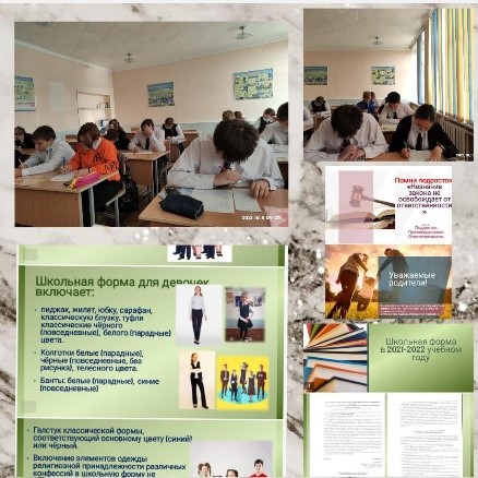 11.10 2021 года во всех классах школы проведен правовой всеобуч по темам, в соответствии возрастными особенностями учащихся. Учащиеся 1-4 классов «совершили» путешествие по сказкам «Права и обязанности сказочных героев. Мои права и обязанности». В 5-8 классах шел разговор об административной ответственности несовершеннолетних за совершение мелкого хулиганства.