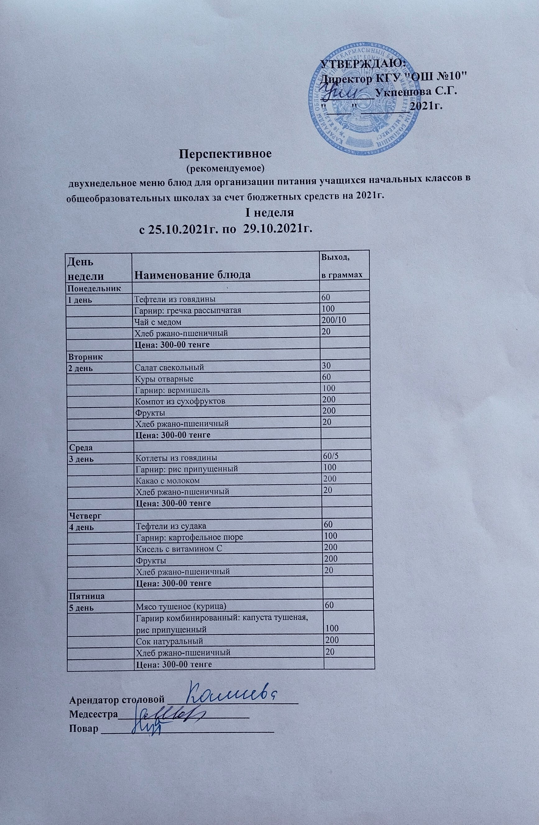 Перспективное (рекомендуемое) двухнедельное меню блюд для организации питания учащихся начальных классов в общеобразовательных школах за счет бюджетных средств на 2021г. I неделя с 25.10.2021г. по 29.10.2021г. (3 день)