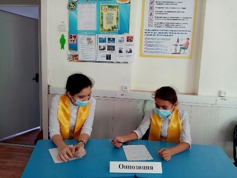 Две команды в составе: Шаймольдина Олжаса, Тохметовой Дарины (правительство) и Хрячковой Шабнам, Юсуповой Илахэ ( оппозиция) отстаивали свою точку зрения по резолюции: Эта палата считает, что нужно развивать искусственный интеллект. Время выступления отмечал тайм спикер Калиниченко Александр. Игра показала, что ребята уже обладают способностями отстаивать свою точку зрения, грамотно и уверенно выступать. Успехов вам, юные дебатеры!