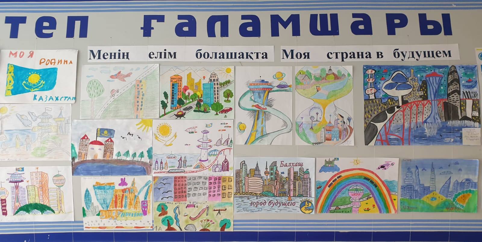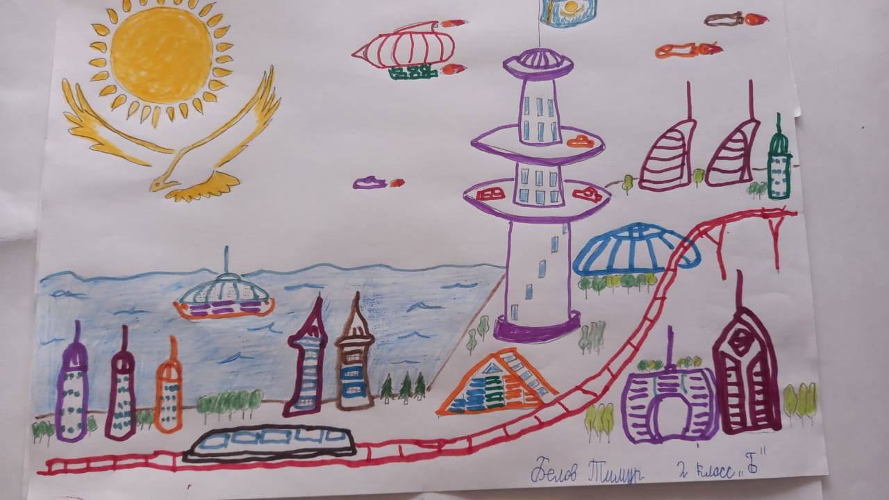 Рисунки получились очень содержательные и яркие! Но самое главное, что яркое солнце и голубое небо, весёлая радуга говорят о счастливом будущем Казахстана! Более 20-ти работ было предоставлено на конкурс! Все ребята и их семьи получат грамоты.