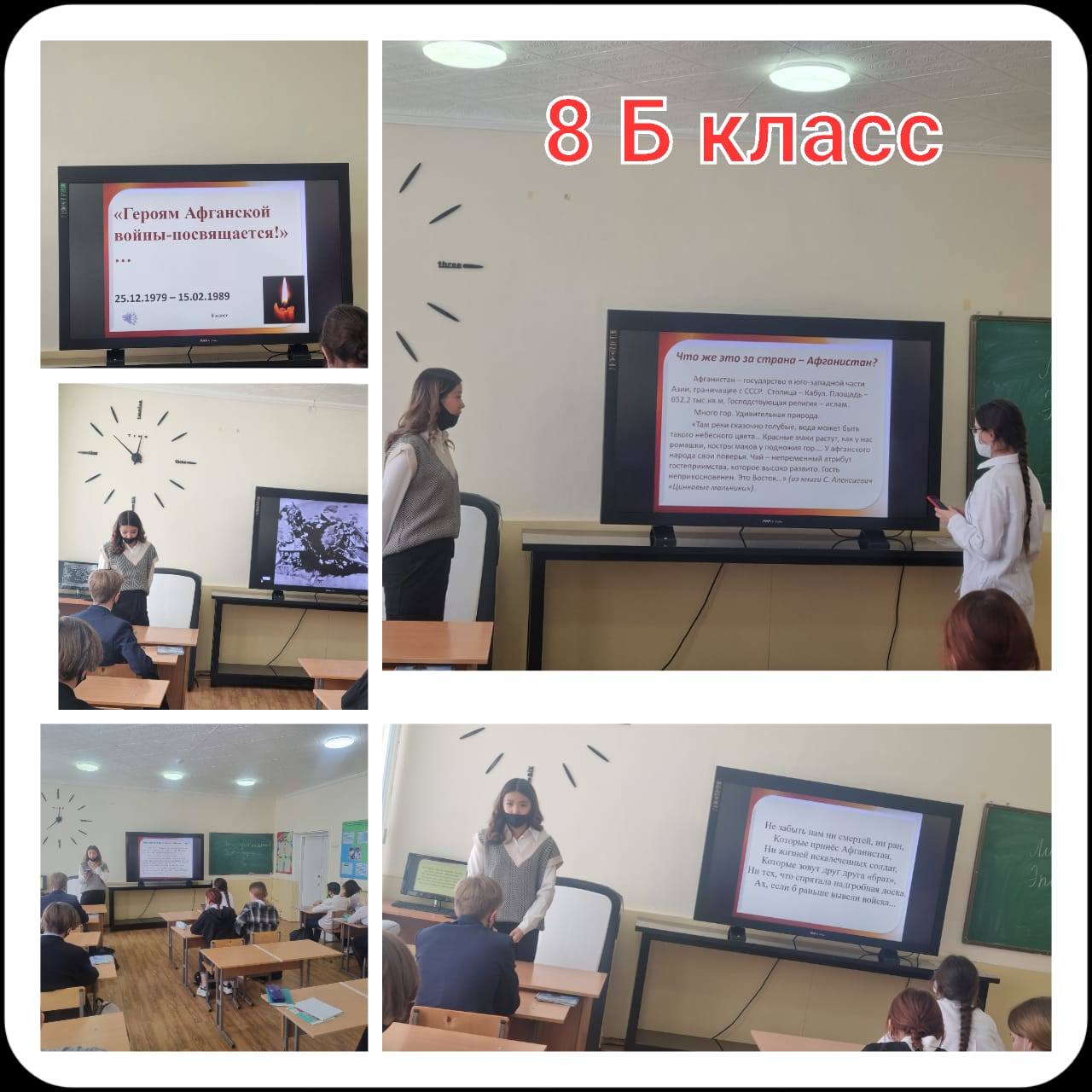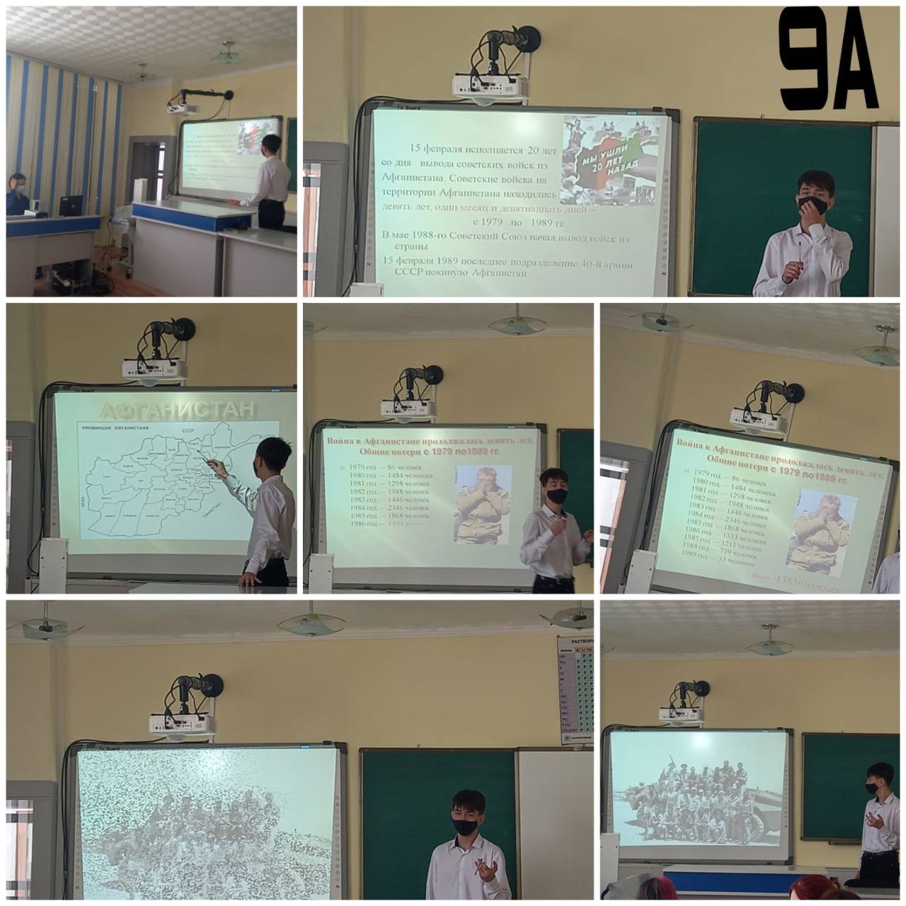 14.02.2022 жылы 7-9 сыныптарда "ұмытуға құқықсыз" ерлік сабақтары өтті, онда оқушылар ауған соғысының оқиғалары туралы талқылады, батылдық, табандылық, тектілік танытқан интернационалист жауынгерлерді, жауынгерлік өмірдің өте қиын жағдайларында, үйден алыс жерде әскери антқа, әскери және адами борышқа адалдығын сақтаған адамдар туралы еске алды. Сабақ барысында тарихи материалдар, деректі және көркем фильмдерден үзінділер, презентациялар қолданылды.