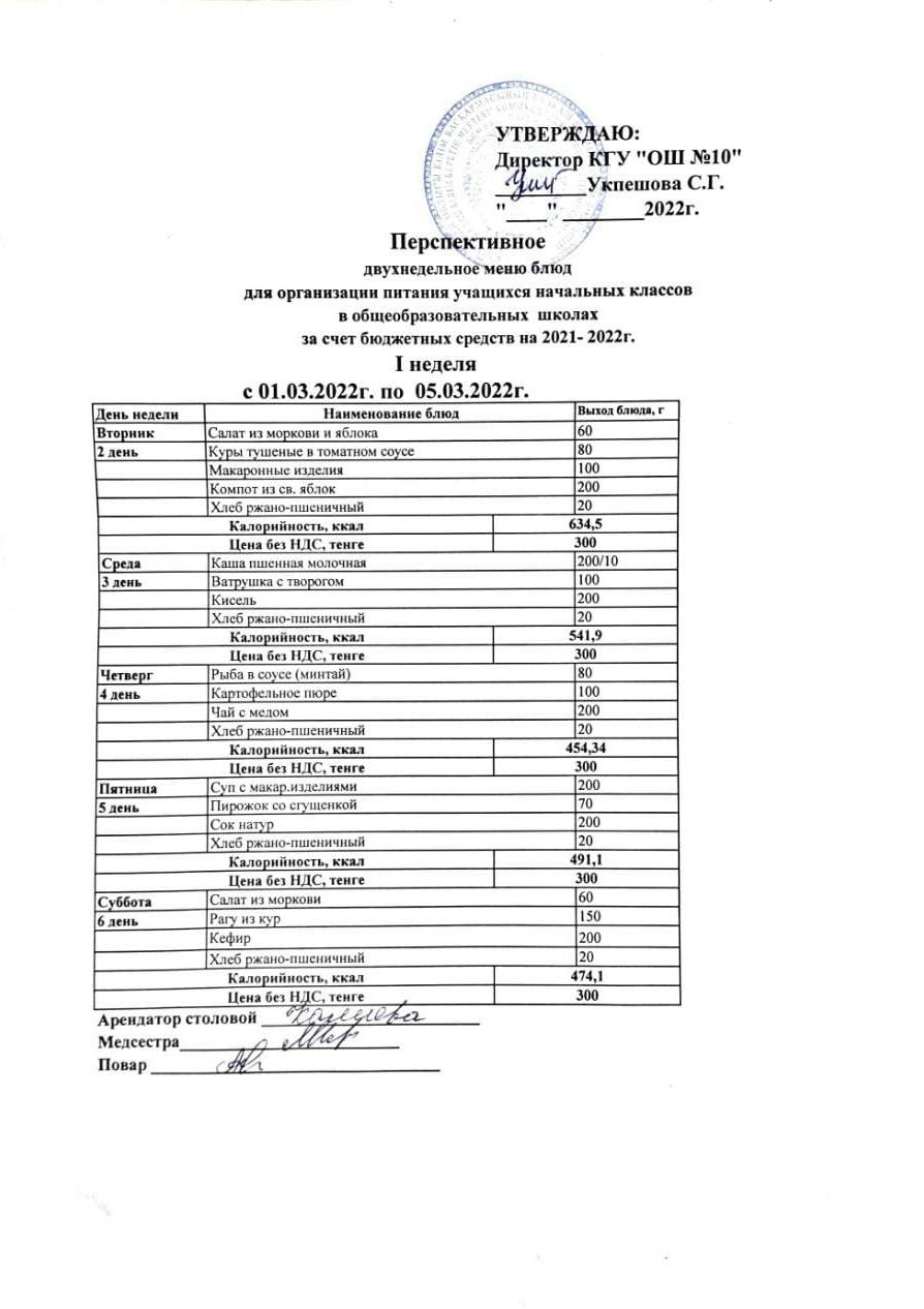 Перспективное (рекомендуемое) двухнедельное меню блюд для организации питания учащихся начальных классов в общеобразовательных школах за счет бюджетных средств на 2021-2022 год 1 неделя с 1.03.2022 по 05.03.2022 (3 день)