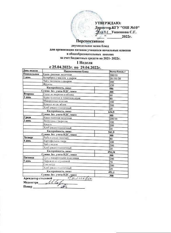 Перспективное (рекомендуемое) двухнедельное меню блюд для организации питания учащихся начальных классов в общеобразовательных школах за счет бюджетных средств на 2021-2022 год 1 неделя на 26.04.2022 (вторник)