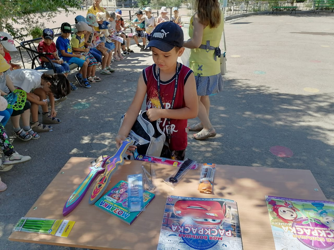 Наш день начался со вкусного и питательного завтрака. Продолжение было в уютном школьном дворе, где ребят ждала игровая программа, где ребята повторили правила безопасного поведения дома, на озере, во время прогулок и пикников с родителями. И, конечно же, любимая всеми детьми ярмарка подарков. Каждый нашел подарок для себя. А после был поход в кинотеатр, где ребятам с большого экрана еще раз напомнили о том, как нельзя себя вести на озере.