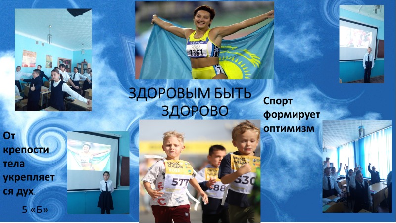 Бұл күні барлық сыныптарда «Дені сау болу керемет!» денсаулық сағаттары өткізілді. Үзілістерде спорт, дене шынықтыру туралы әндер айтылды.