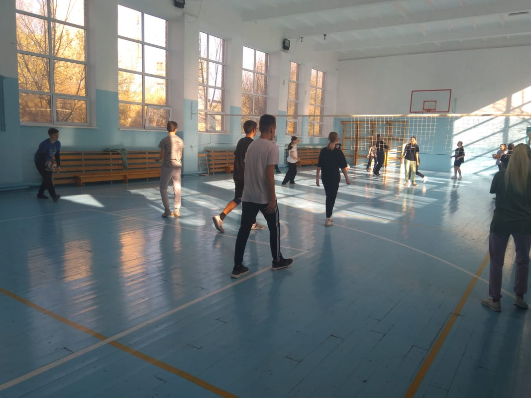 Дене шынықтыру пәнінің мұғалімі Юрий Васильевич Пестов 7-9 сынып оқушыларына волейболдан жаттығу ұйымдастырды. 15 жас спортшыларосы командалық ойында өз дағдыларын жетілдірді.
