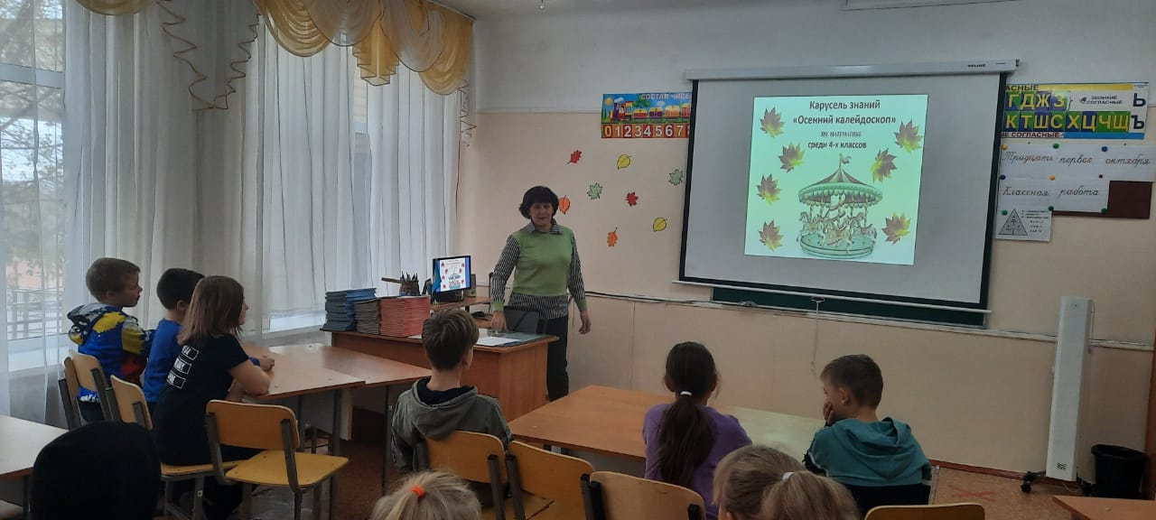 31 октября среди учащихся 4-х классов прошло внеклассное мероприятие карусель знаний "Осенний калейдоскоп".