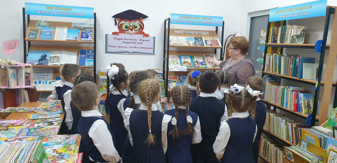 Бірінші сынып оқушылары кітаптар әлеміне қызықты саяхат жасады: кітапханашы балалармен кітаптарға ұқыпты қарау, оларды пайдалану ережелері және кітаптарды кітапханаға қайтару мерзімдері, сондай-ақ кітапханадағы тәртіп ережелері туралы әңгімелесті, түрлі-түсті безендірілген кітап көрмелеріне ерекше назар аударылды. Балалар «абонемент», «оқу залы», «формуляр» деген не екенін, әр кітап өз орнында тұрғанын және кітапханада қандай принцип бойынша кітаптар орналасқанын білді.