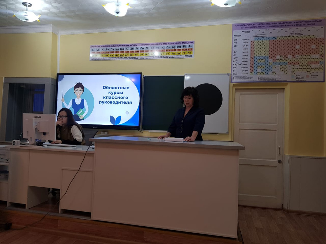 На зимних каникулах в области были организованы курсы классного руководителя. Нашу школу представляла Шегирова Г.А. Она познакомила коллег с содержанием курсов. В торжественной обстановке директор школы Укпешова С.Г. вручила Гульсаре Абдуманаповне сертификат.