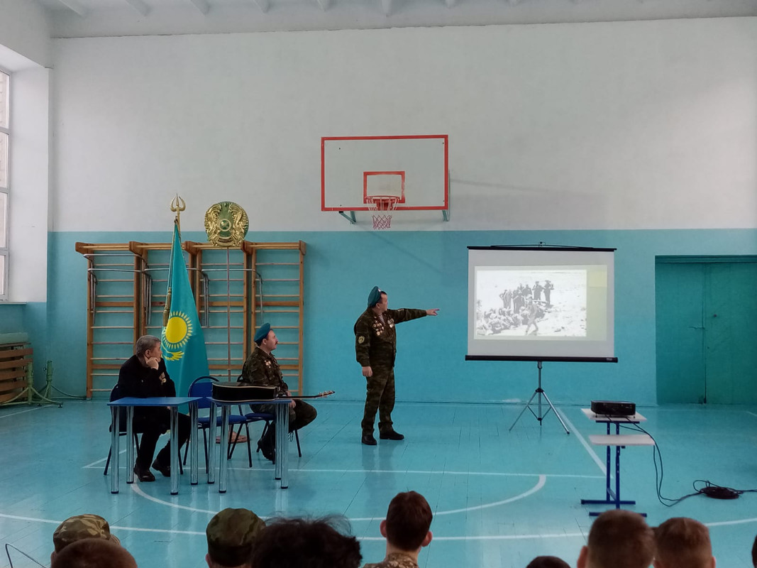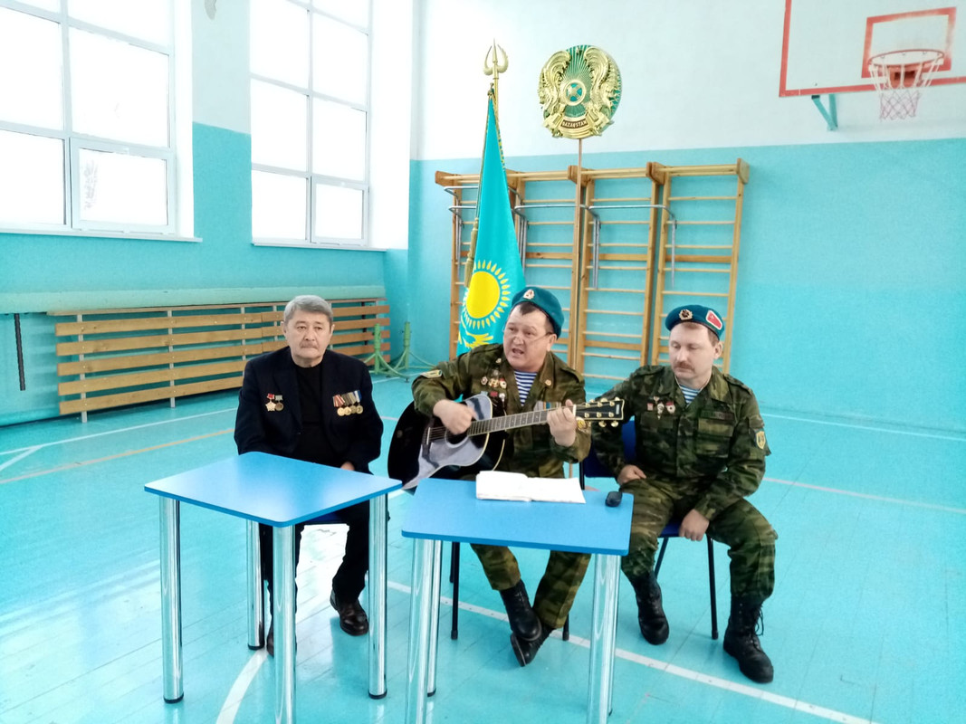 С целью формирования нравственных идеалов и патриотизма, знаний об истории Афганской войны, привития уважения к старшему поколению воспитания гражданственности, 13.02 был проведен Час истории, посвященный выводу войск из Афганистана, участниками которого были учащиеся 7,9-х классов. Час истории провели наши гости: старший лейтенант Абдирбаев М., гвардии сержант ВДВ Аязбаев М., председатель Совета отцов «Отцовское плечо» Русских А.С.. Учащиеся с интересом слушали рассказ о военных событиях тех далеких лет, который сопровождался показом фотографий из личного архива. После рассказа гостей, мальчишки и девчонки засыпали их вопросы. В завершении Часа в зале зазвучала музыка: это Аязбаев М. аккомпанировав себе на гитаре, исполнил несколько песен. В знак благодарности гостям были вручены памятные фотографии.