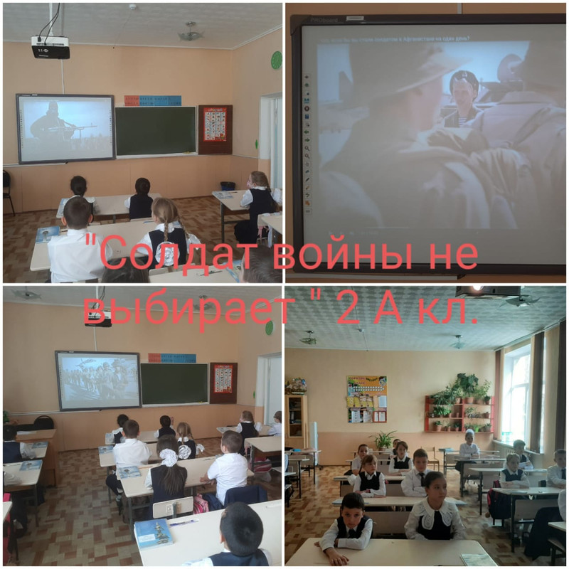 «Мектеп планетасы» стендінде «Ауғанстан – ұмыту құқығынсыз» көрмесі ресімделді. Мектеп кітапханасында «Сарбаз соғысты таңдамайды» әдебиетін қарау ұйымдастырылған. Үлкен экранда кіреберісте «Біз оларды еске алған кезде олар тірі!»