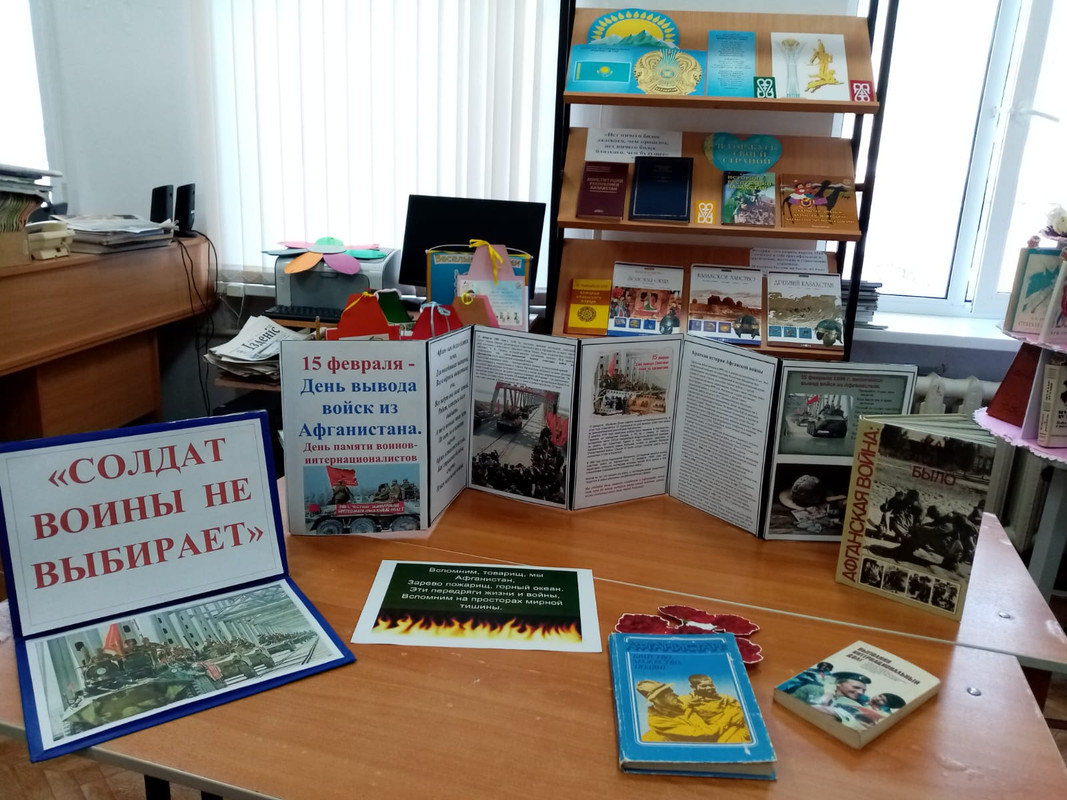 На стенде «Школьная планета» оформлена выставка «Афганистан – без права на забвенье». В школьной библиотеке организован просмотр литературы «Солдат войны не выбирает». На большом экране в фойе демонстрировались видеофильмы «Они живы, пока мы о них помним!»