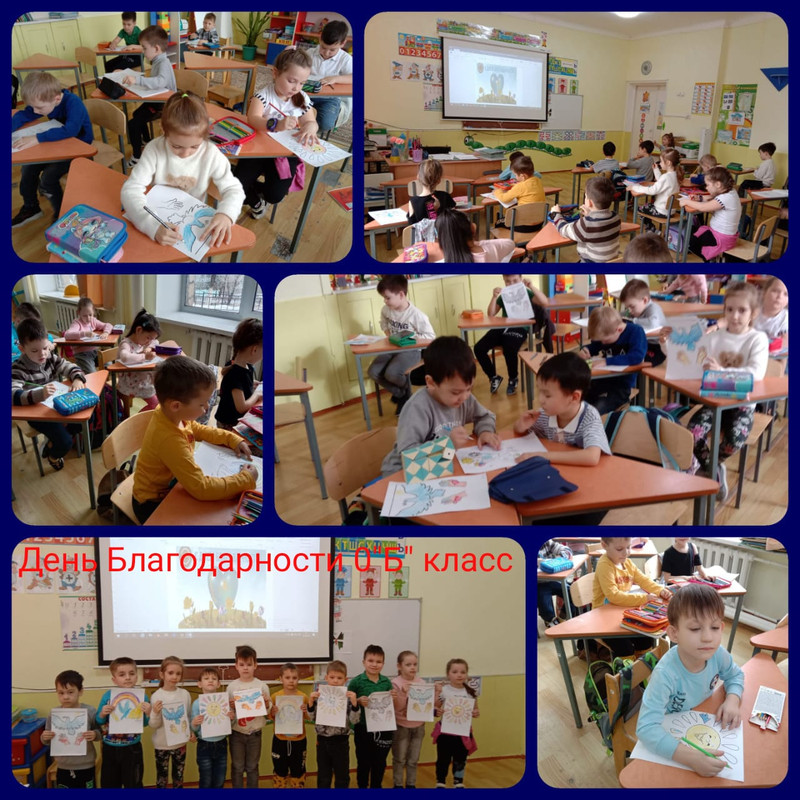 Вчера мы отмечали День Благодарности. Ученики 0Б класса тоже стали участниками этого мероприятия. Ребята рисовали картинки в этот день и говорили много слов благодарности друг другу и окружающим.