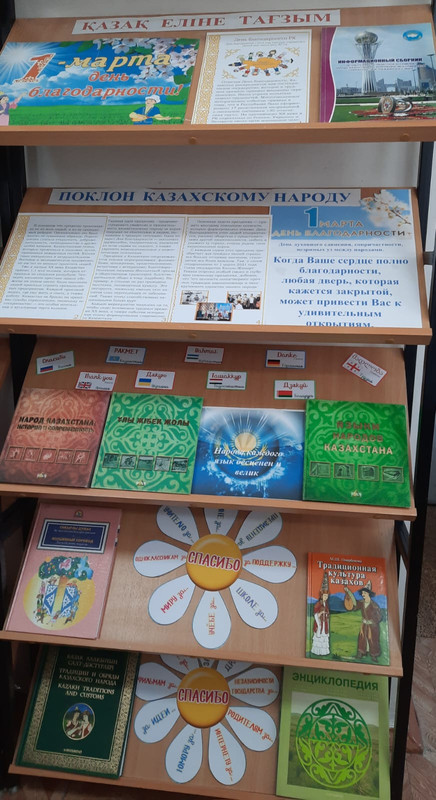 Оқушылардың бойында патриотизмді, бейбітшілікті, ұлттық келісімді қалыптастыру, Отан туралы білімдерін тереңдету және кеңейту мақсатында 20 ақпаннан бастап мектепте Алғыс айту күніне арналған іс-шаралар басталды. Мектеп ауласында Алғыс айту күніне арналған баннер орнатылды. Мектеп кітапханасында (кітапхана меңгерушісі Н.Н.Куприянчик) «Қазақ еліне тағзым» көрмесін ұйымдастырды. «Мектеп планетасы» стендінде «Алғыс айту күні» ақпараттық материалы ресімделді. 1 наурызда мектеп фойесінде музыка шырқалды.