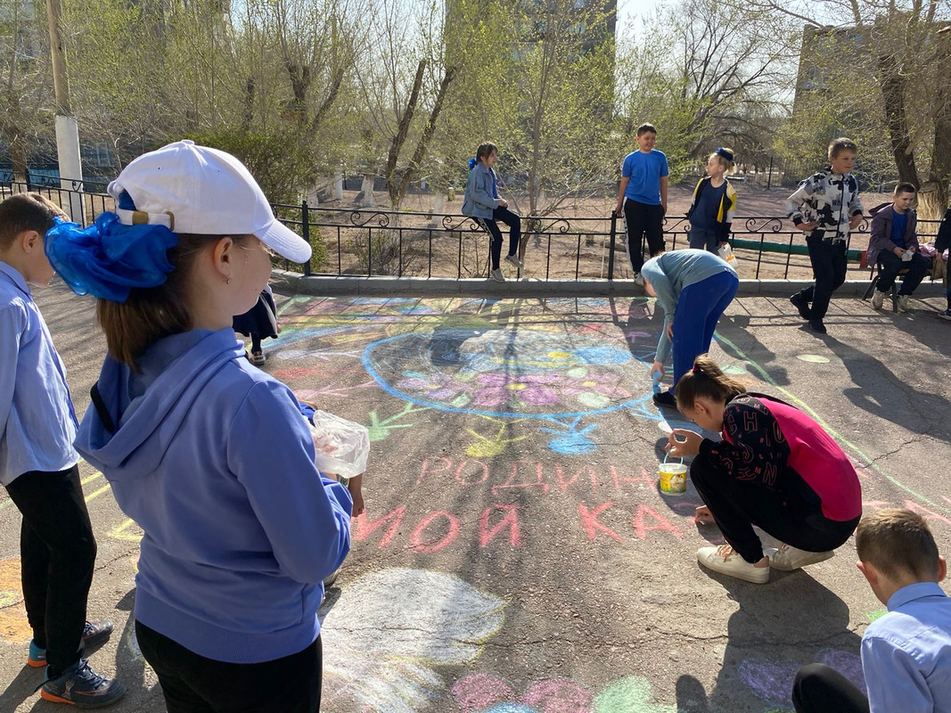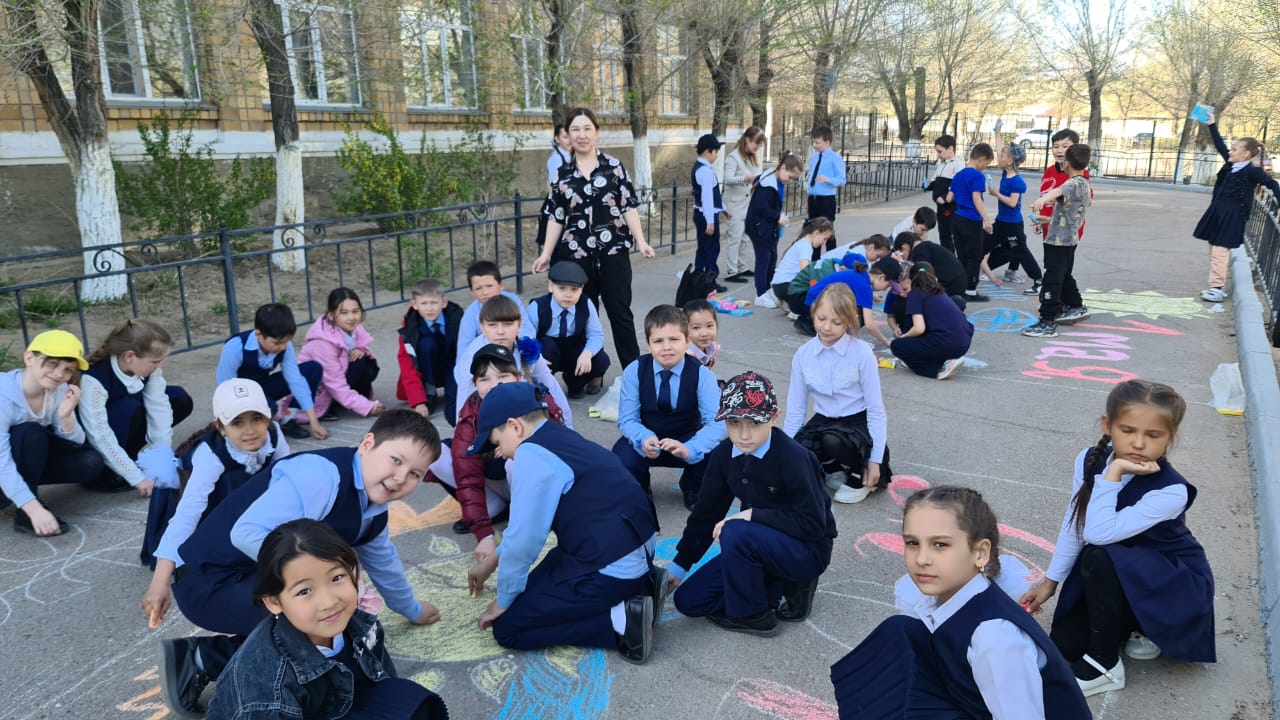 28.04.2023 жылы 3-4 сынып оқушылары мектеп ауласына өздерінің қиялын көрсету және «Сен менің Отанымсың! Менің Қазақстаным!»асфальттағы суреттер байқауына қатысудан ерекше көңіл күй алу еді. Қандай керемет суреттер шықты! Балаларды ұйымдастырғаны үшін сынып жетекшілеріне рақмет!