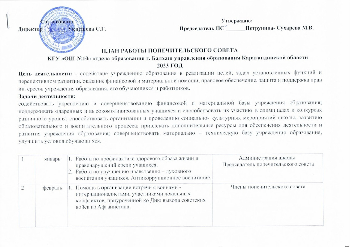 2023 жылға Қарағанды облысы білім басқармасының Балқаш қ. білім бөлімінің «№ 10 ЖББМ» КММ ҚАМҚОРШЫЛЫҚ КЕҢЕСІНІҢ ЖҰМЫС ЖОСПАРЫ