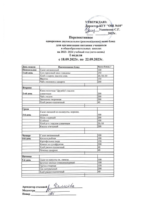 Перспективное (рекомендуемое) двухнедельное меню блюд для организации питания учащихся начальных классов в общеобразовательных школах за счет бюджетных средств на 2023-2024 год 1 неделя на 20.09.2023 (среда)