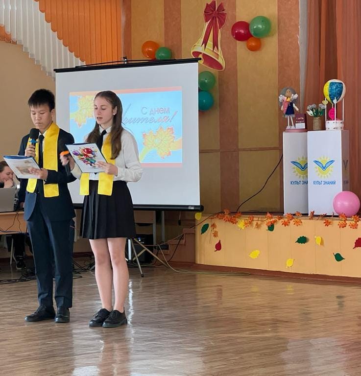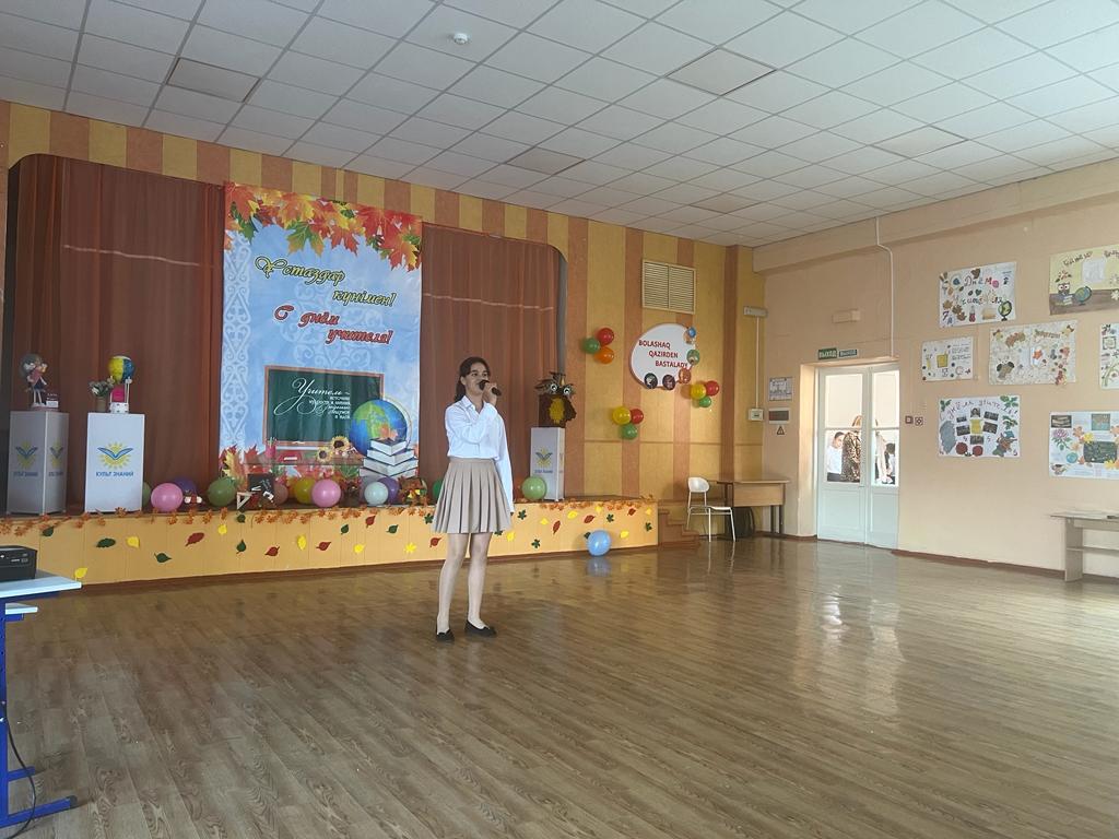 В фойе звучали школьные песни, на большом экране демонстрировались видеоролики из школьной жизни, с поздравлениями учителей. В празднично украшенном фойе учителей встречали учащиеся 11,10 классов. До начала уроков была проведена линейка, на которой заместитель директора по ВР Кириченко Л.В. зачитала приказ директора школы о проведении 5.10 Дня дублера. Заместитель директора по ВР (дублер) Вдовина А. представила классных руководителей.  С напутственным словом выступила директор школы Укпешова С.Г.. Она пожелала всем хорошо провести этот день!