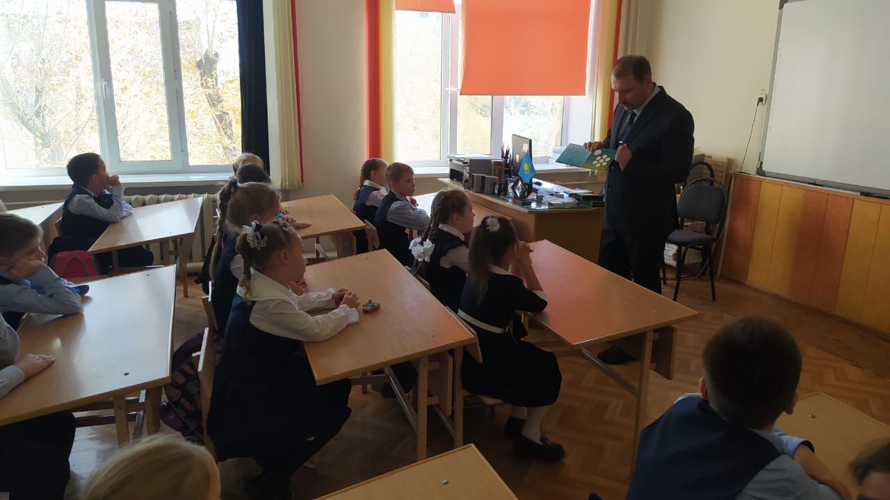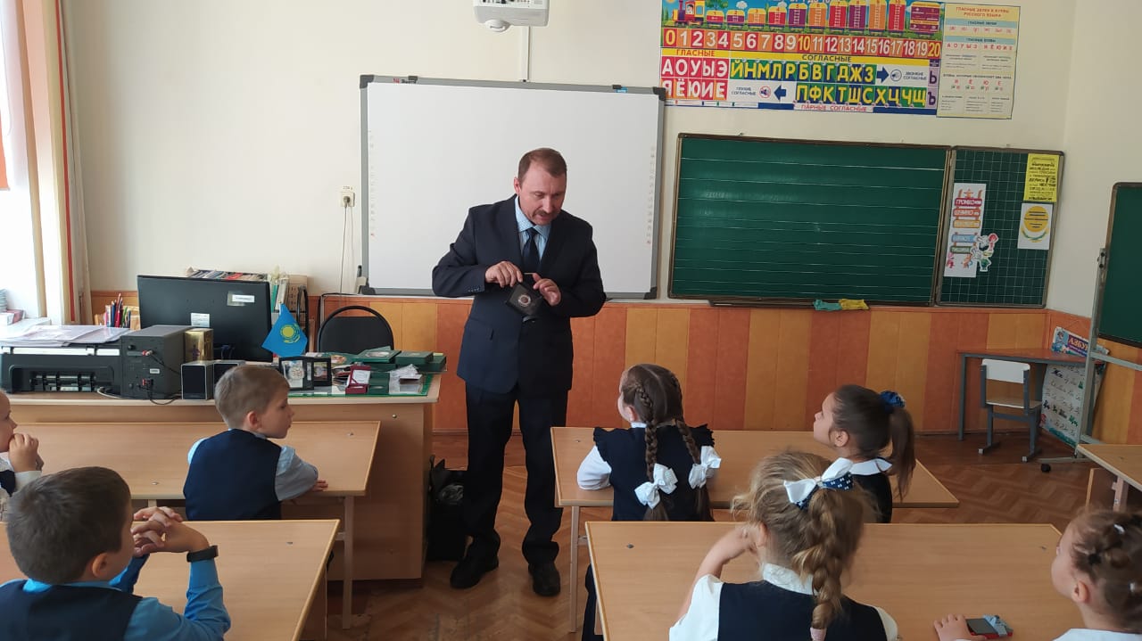 Казахстанский тенге. Это официальная валюта Республики Казахстан. Введена в обращение 15 ноября 1993 года (до распада СССР в республике ходил российский рубль). Название "тенге" происходит от средневековых тюркских мелких серебряных монет "денге" или "таньга". Тенге — самая молодая национальная валюта на постсоветском пространстве. Об этом и о многом другом о денежной единице Республики Казахстан рассказал учащимся начальных классов председатель Совета отцов «Отцовское плечо» Русских А.С.. Алексей Сергеевич не просто рассказал, но и показал ребятам коллекцию денежный знаков, которую они с большим интересом рассматривали и задавали вопросы.