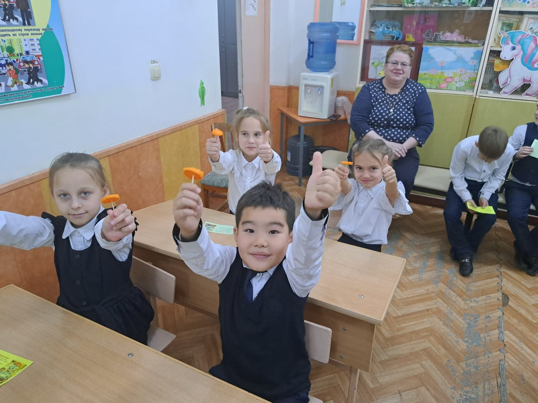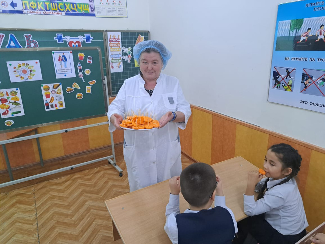 Оқушылар өлең айтты,жұмбақтар шешті, частушки әнінайтты. Мереке соңында балалар сәбізден дәм татып, сыйлық ретінде тіс щеткаларын алды.