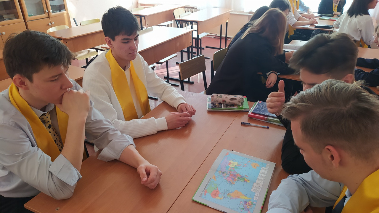 В рамках областного форума «Ценностно-ориентированный подход в обучении и воспитании» 06.11.2023 года, согласно плану был проведен урок географии в 11 классе в форме дебатов по теме: «Стремление Казахстана»