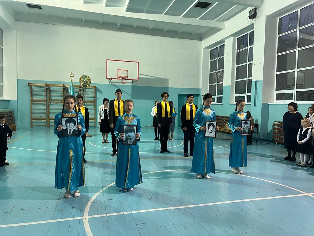 После исполнения Государственного Гимна РК и вступительного слова директора школы Укпешовой С.Г., выступила агитбригада. В выступлении молодого поколения звучали строки о тех далеких декабрьских событий.
