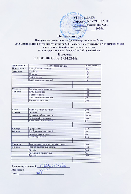 Перспективное (рекомендуемое) двухнедельное меню блюд для организации питания учащихся в общеобразовательных школах за счет бюджетных средств на 2023-2024 год 2 неделя на 18.01.2024 (четверг)