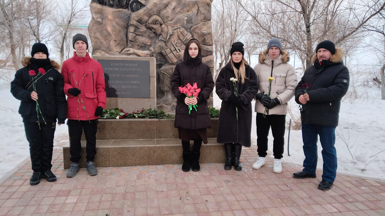 Биылғы жылда ерекше болды.15 ақпан ТЖ жөніндегі директордың орынбасары Л.В. Кириченкомен бірге қамқоршылар кеңесінің төрағасы А.С.Русских мектептің өзін-өзі басқару өкілдері қаза тапқандарды еске алып, ескерткішке қызғалдақтар мен гүлдерді қойды.