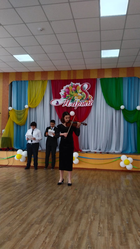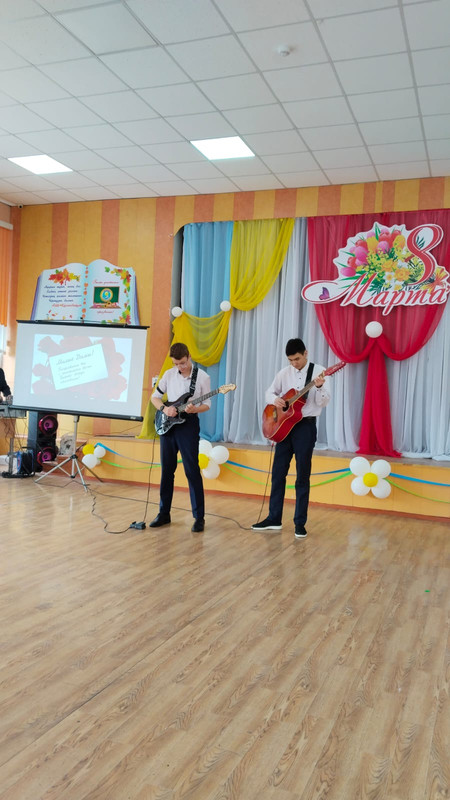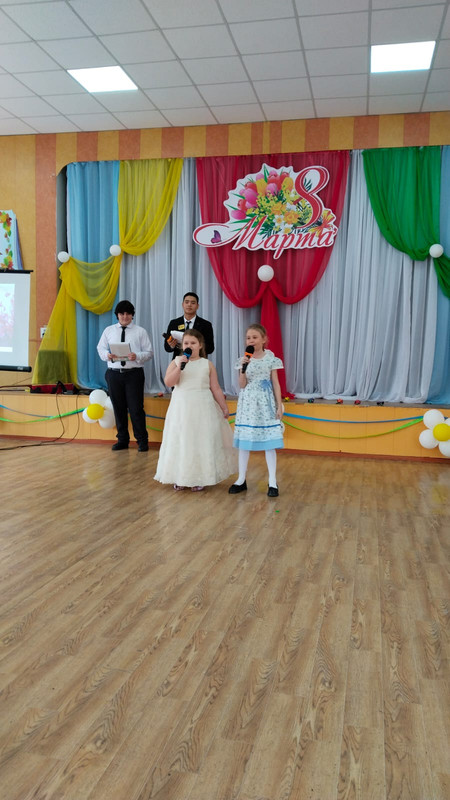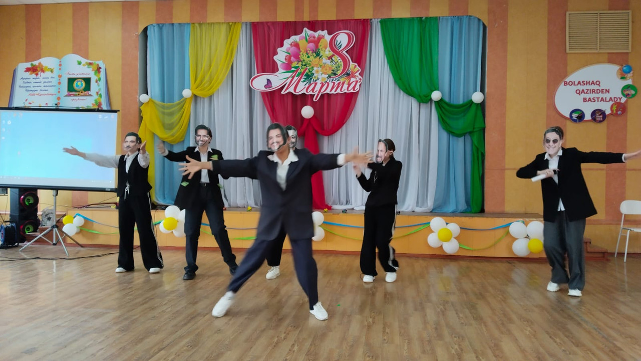 Әдеттегідей, көрермендер «Денс-класс» би ұжымының қыздарын өз таланттарымен қуантты. Бір қызығы, біздің ата-аналарымыз да «Әке арқасы» әкелер кеңесінің төрағасы А.Ш. Жексембаевтың орындауында Ана туралы әнді шырқады, ал оқушылардың барлық әкелері атынан әйелдерді қамқоршылық кеңесінің төрағасы А.С.Русских құттықтады. Концертке қатысқандар үшін қазір Ресейде тұратын бұрынғы әріптес АӘ және ТД педагог-ұйымдастырушы Л.Г. Кочетковтың бейне құттықтауы болды.