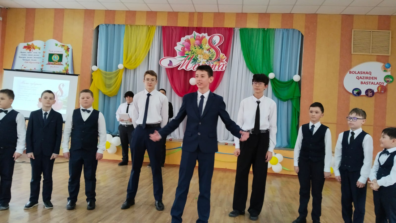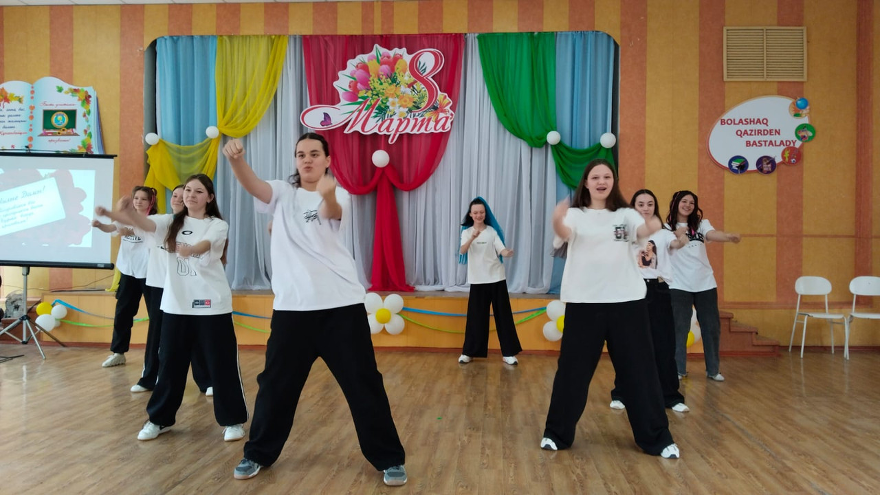 0-11 сыныптардың ең талантты және белсенді оқушылары мерекеге сыйлық ретінде нөмірлер дайындады-мерекелік концерт «Уа, әйел... сенен әдемі жан жоқ!» көктем туралы сөзбен бастаған 9-сыныптың жетекші оқушылары Олжас Шаймолдин мен Леван Саралидзе. Концертті 2025 жылдың түлектері Ангелина Филиппова мен Газиз Марат ашып,бикомпозициясын орындады. Концерттің бағдарламасы әр түрлі болды: өлеңдер әндермен, гитарада ойнаумен, күлкілі көріністермен ауыстырылды.