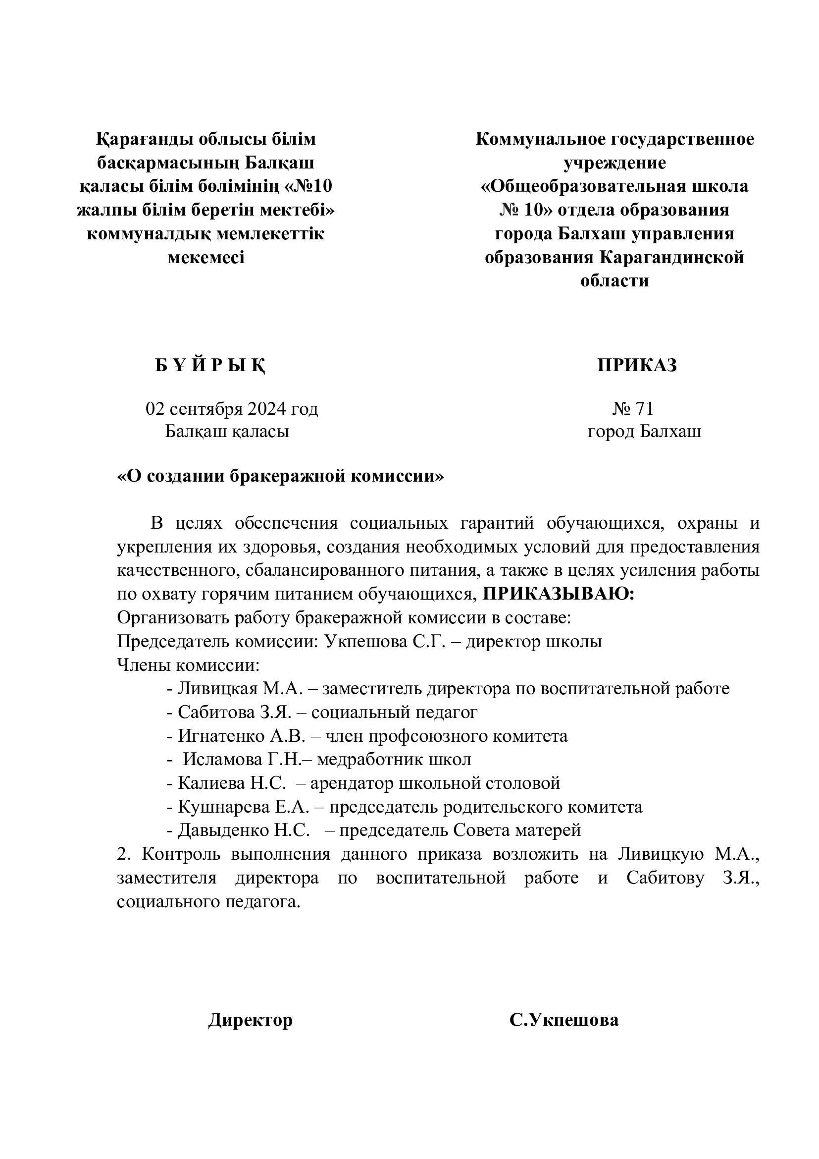 Коммунальное государственное учреждение "Общеобразовательная школа №10" отдела образования города Балхаш управления образования Карагандинской области